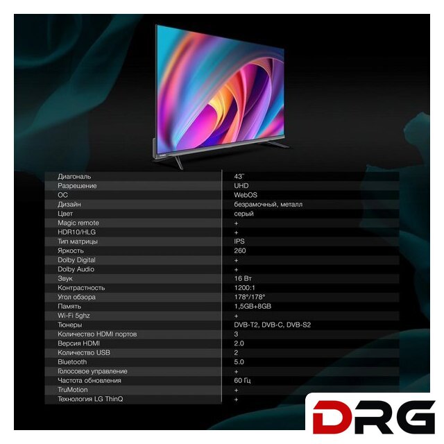 Диагональ экрана | 43" |