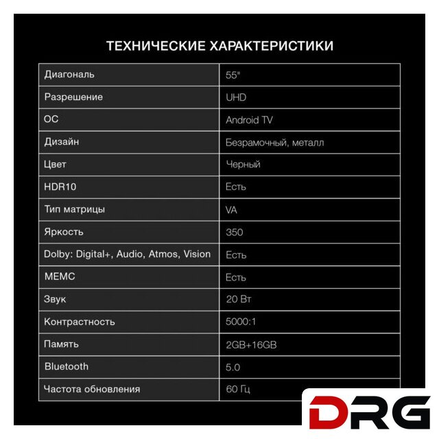 Диагональ экрана | 55" |