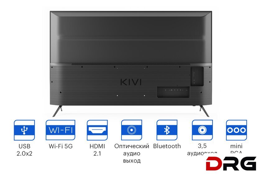 | Пульт в комплекте | KIVI RC60 – серый с голосовым управлением и кнопками Netflix, YouTube |